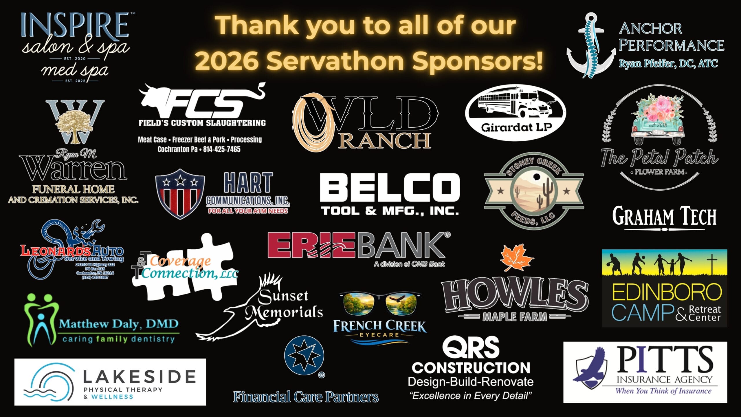 Commit to a $600+ sponsorship to have your business logo featured on the back of our Servathon shirts!